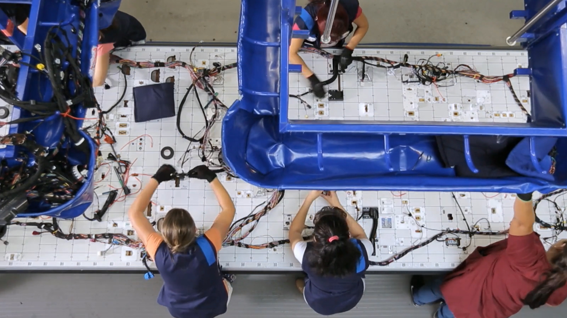 그런데 와이어링 부품은 다른 부품을 생산할 때보다 보다 많은 인력이 필요합니다.자동차에 적용될 배선을 설계하고 그 배선 가닥들을 모아 절연테이프나 케이블타이 등을 이용해 배선을 묶어둡니다. 이렇게 완성된 배선들은 검사하는 과정인 테스트 테이블을 거쳐 완성차 공장에 납품하게 되는데요. 대부분 이 과정이 사람 인력으로 완성됩니다.