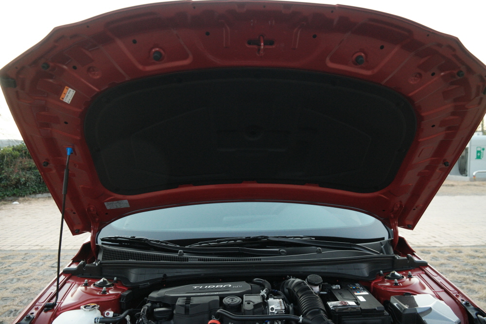 아반떼 N 라인 엔진룸...엔진오일 규격 봤는데 저점도 오일인 0w-20도 사용가능하더군요. 불과 몇년전까지만 해도 터보차에 0w-20 엔진오일 규격은 상상도 못했는데 말이죠. 기술의 발전이 참 대단하네요.,