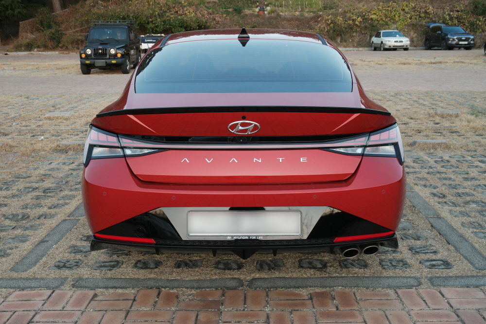 아반떼 쿠페처럼 아반떼 N 라인도 싱글 듀얼팁 머플러가 적용됐습니다.