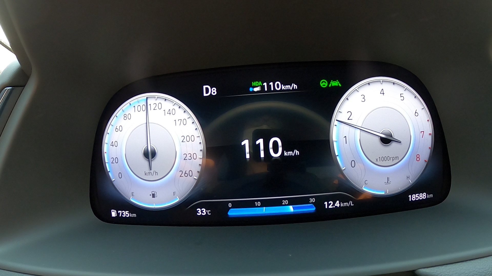 실제로 시내주행만 할 경우 트립 기준으로 연비가 보통 8-9km/l를 기록하지만 하지만 외곽 고속도로주행의 경우 낮은 톱기어비를 지닌 8단에 주로 고정한 상태에서 항속 주행하면 리터당 15km/l 이상 높은 연비를 내기도 합니다.
