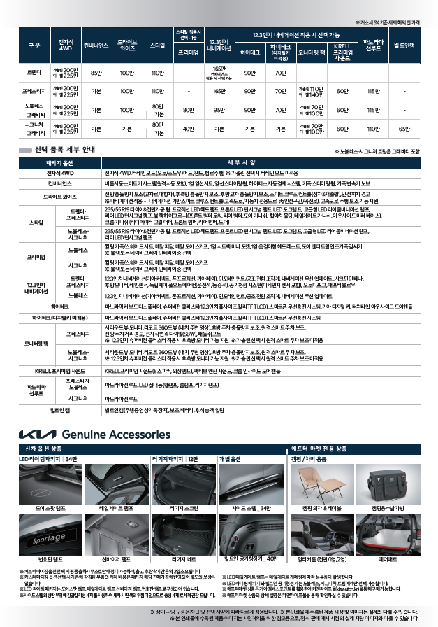 기아의 신형 스포티지 5세대 모델 사전가격표와 세부사양이 공개됐습니다.