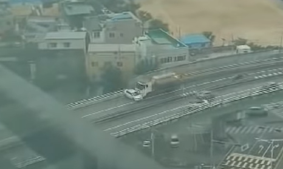 저걸 모를리가 있나? 타이어가 도로에 끌리는 소리는 우리가 생각한 것보다 더 크다. 근데 몰랐다? 몰랐다면 저 트럭운전자는 청력에 이상이 있는 것이다.