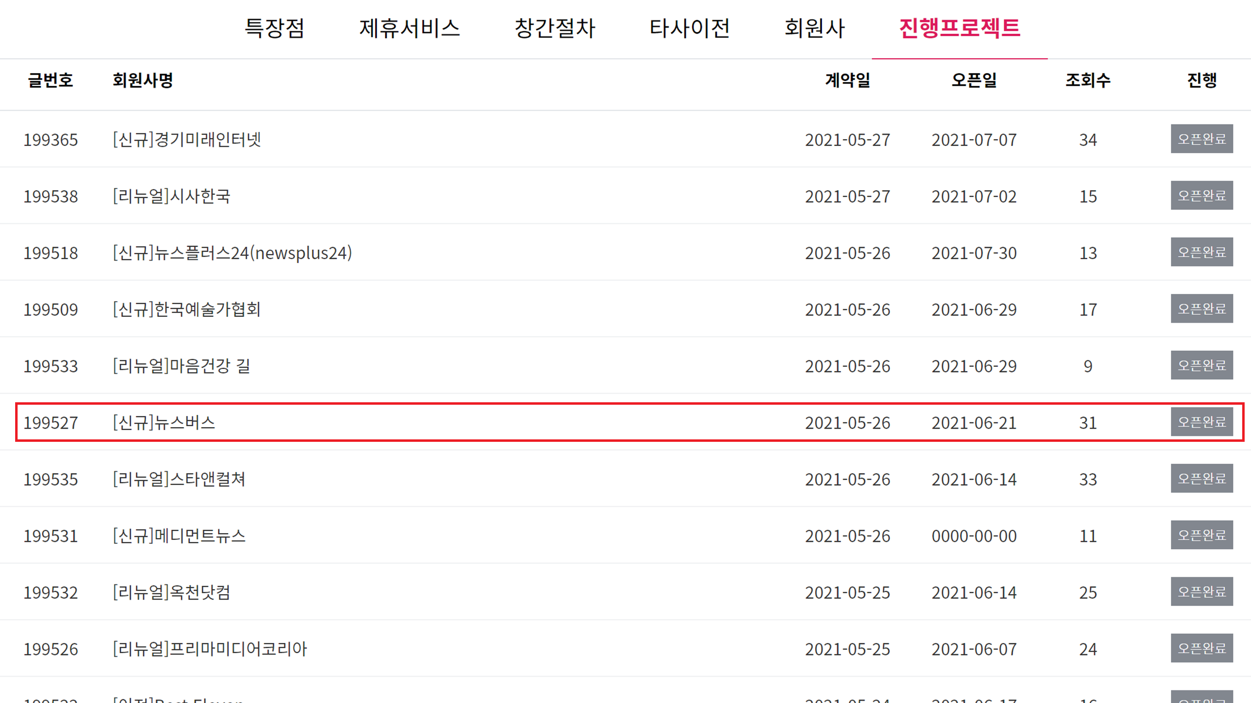엔디소프트의 진행프로젝트 검색해보니 자세히 나오네요. 계약일은 5월26일 실제 오픈일은 6월 21일로 되어 있습니다.
