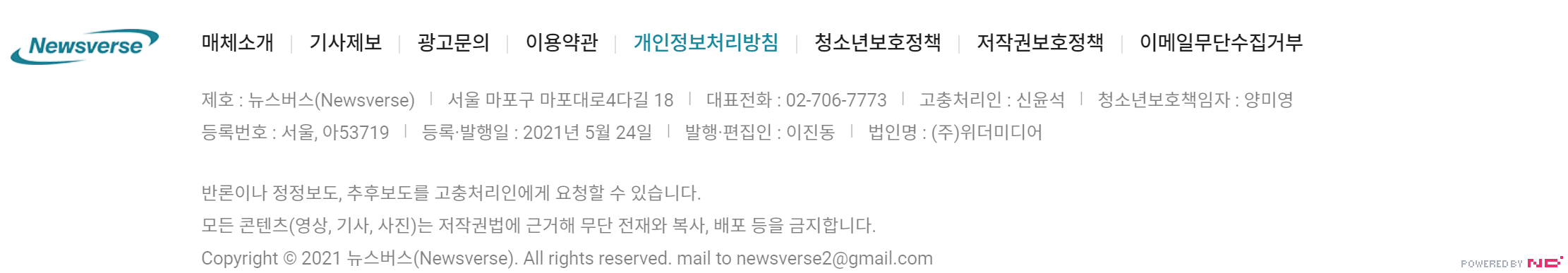 그럼 뉴스버스는 언제 창간됐을까요? 매체 홈페이지 아래를 봅시다.