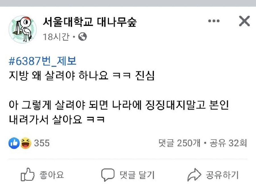 박정희 대통령조차 수도 이전을 계획했을 정도였는데 저 위에 서울대생은 대체 무슨 생각으로 저런 말을 하는지 참...