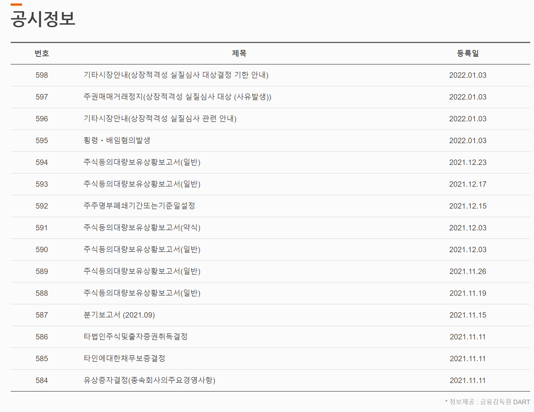 그래도 공시정보에 주권거래매매정지와 횡령 배임 등의 내용은 작성했네...뭐 당연히 공개해야 하지만...