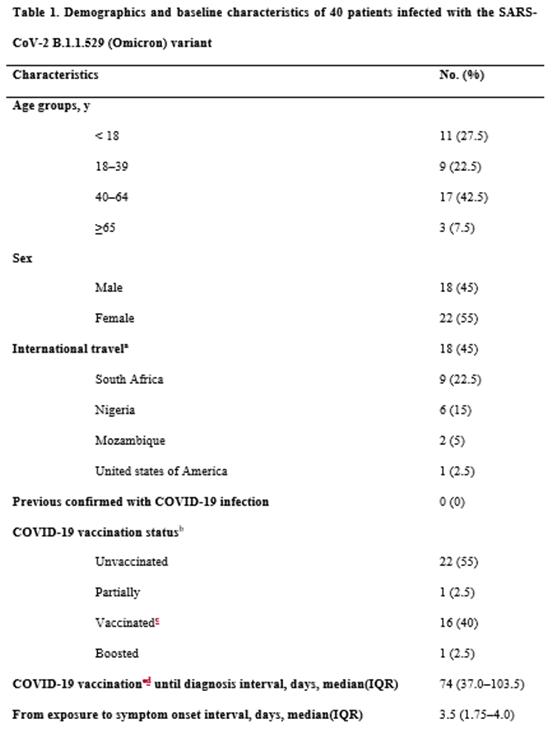 국립중앙의료원(원장 정기현) 감염병임상연구센터 연구팀이 2021년 12월 4일부터 17일까지, 국립중앙의료원에 입원한 오미크론 변이주 40명의 환자를 대상으로 임상특성 및 경과를 관찰하고 분석했습니다.