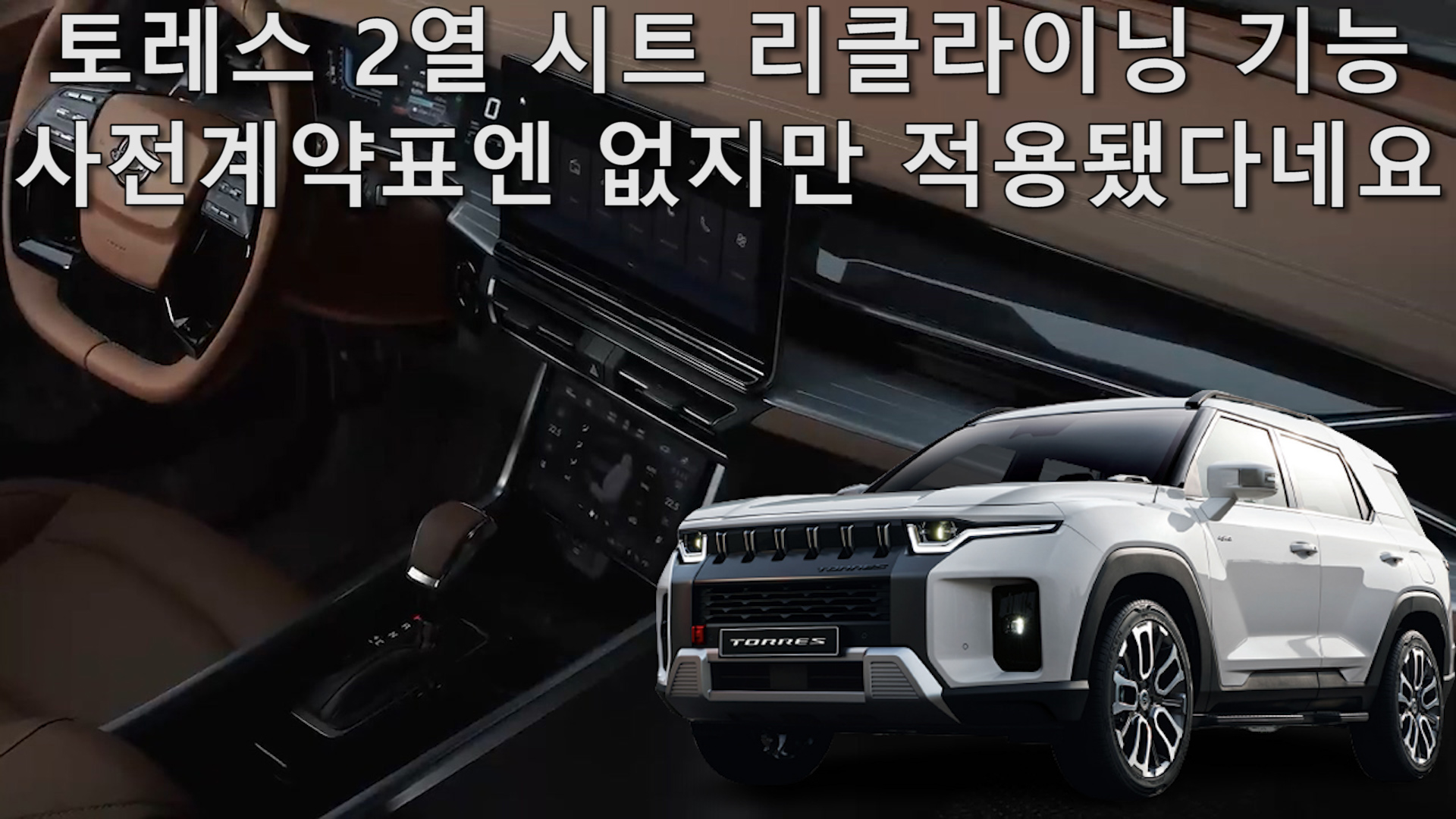 한편, 토레스 가격이 저렴하게 나오긴 했지만 2열 시트 리클라이닝 기능 적용 표기가 안 되어 있어 토레스에 관심 있는 사람들이 의아하게 생각하고 있는데요.