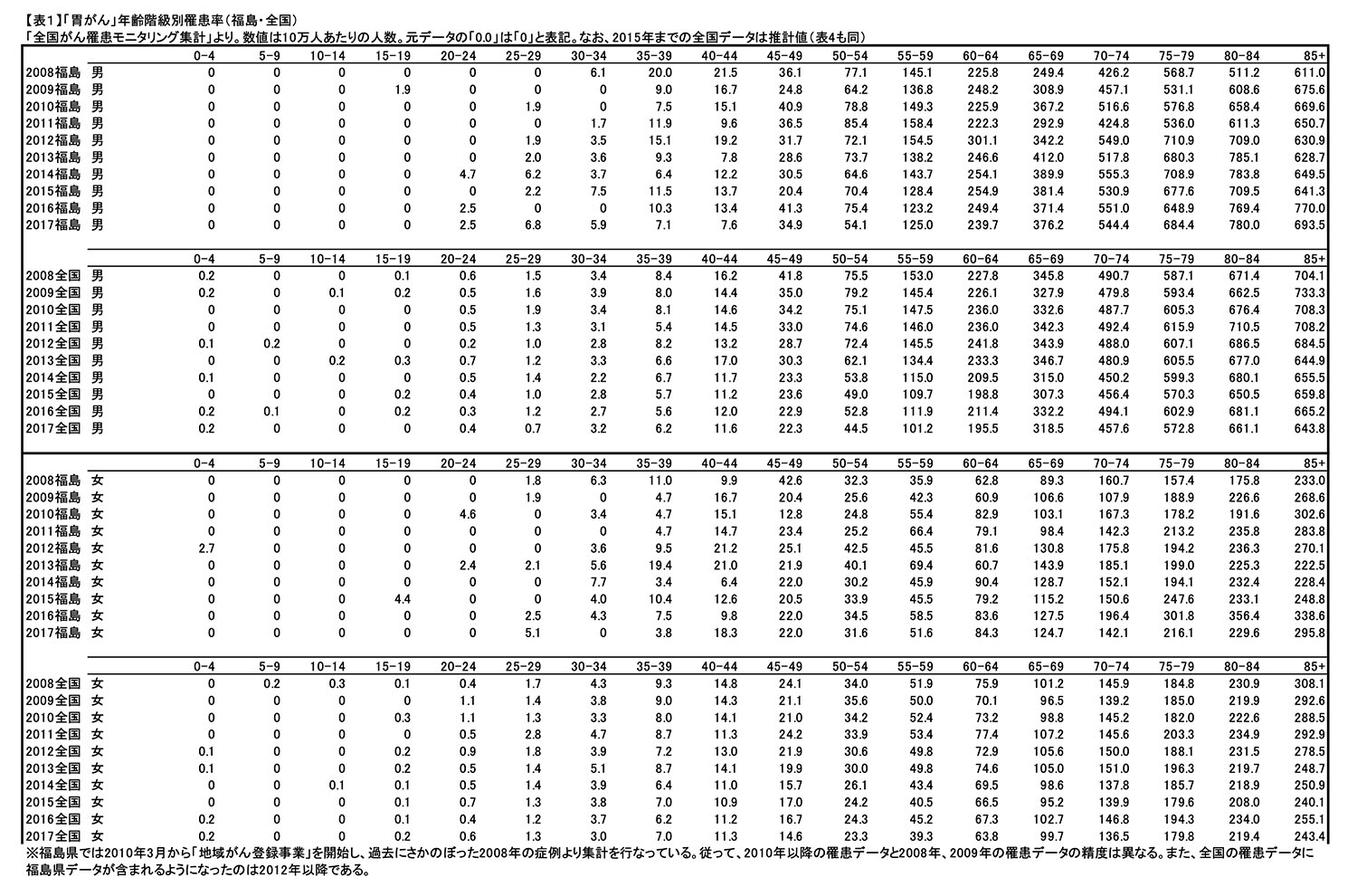 일본국립암연구센터의 '지역암등록전국추계치'에 따르면, 어린이부터 어른까지를 포함한 전연령층에 있어서의 갑상선암의 발병률은 10만명당 연간 7~8명이라고 한다. 또한 사고 당초 갑상선 전문의들은 통상시 소아 갑상선암의 발병률은 '100만명에 1~2명'이라고 언론 등을 통해 설명하고 있다. 했다.