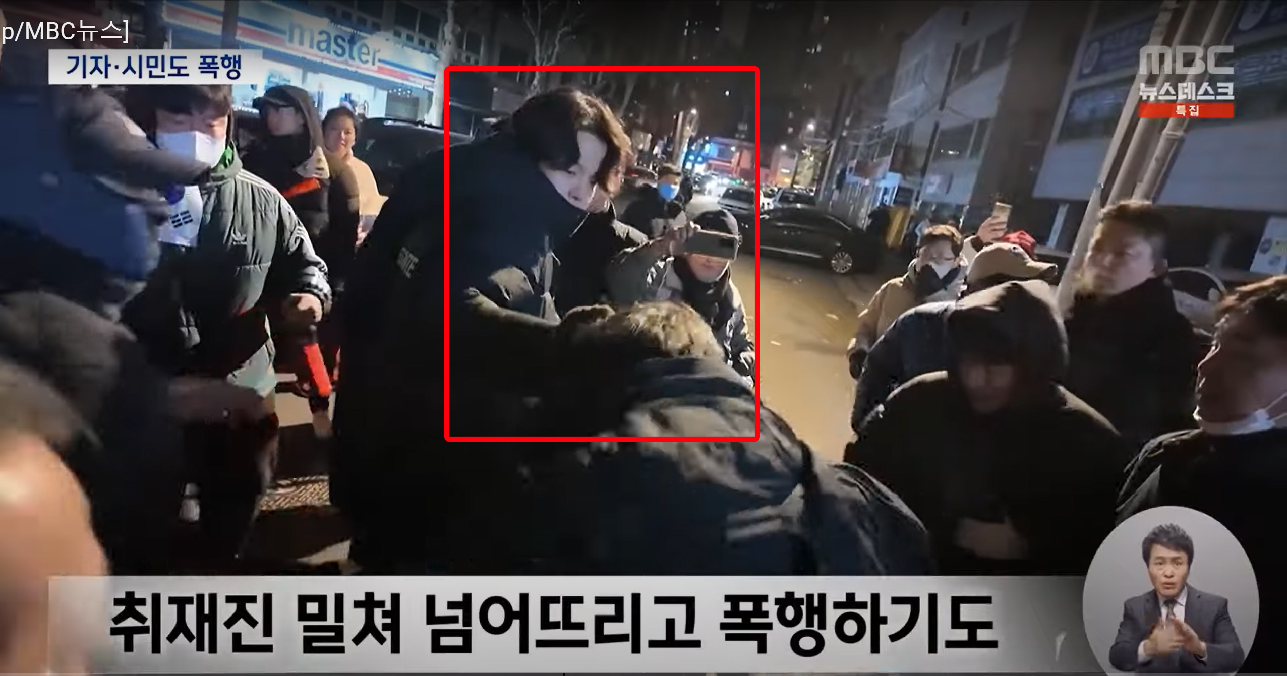 이 남성 외에 둘러싼 군중들 모두 마찬가지인데 이자가 취재진을 넘어뜨려 집단 폭행의 원인이 됐다. 이 자가 가만히 있었어도 취재진의 집단 폭행까진 이어지지 않았다.