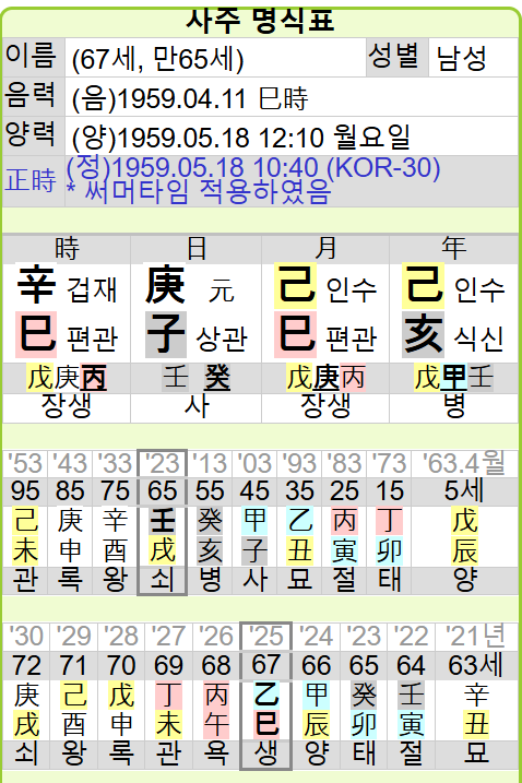 뭐 일단 그건 과거의 일이니 냅두고 이분 올해 날삼재이다. 연월지 사해충이 눈에 띄는데 올해 을사년은 사화가 한번 더 들어와 해수와 충한다. 일간에 자수가 있지만 자수는 사화와 해수가 싸우든 말든 관여 안한다. 다만 속성이 물인 만큼 화기운이 달갑지는 않다.