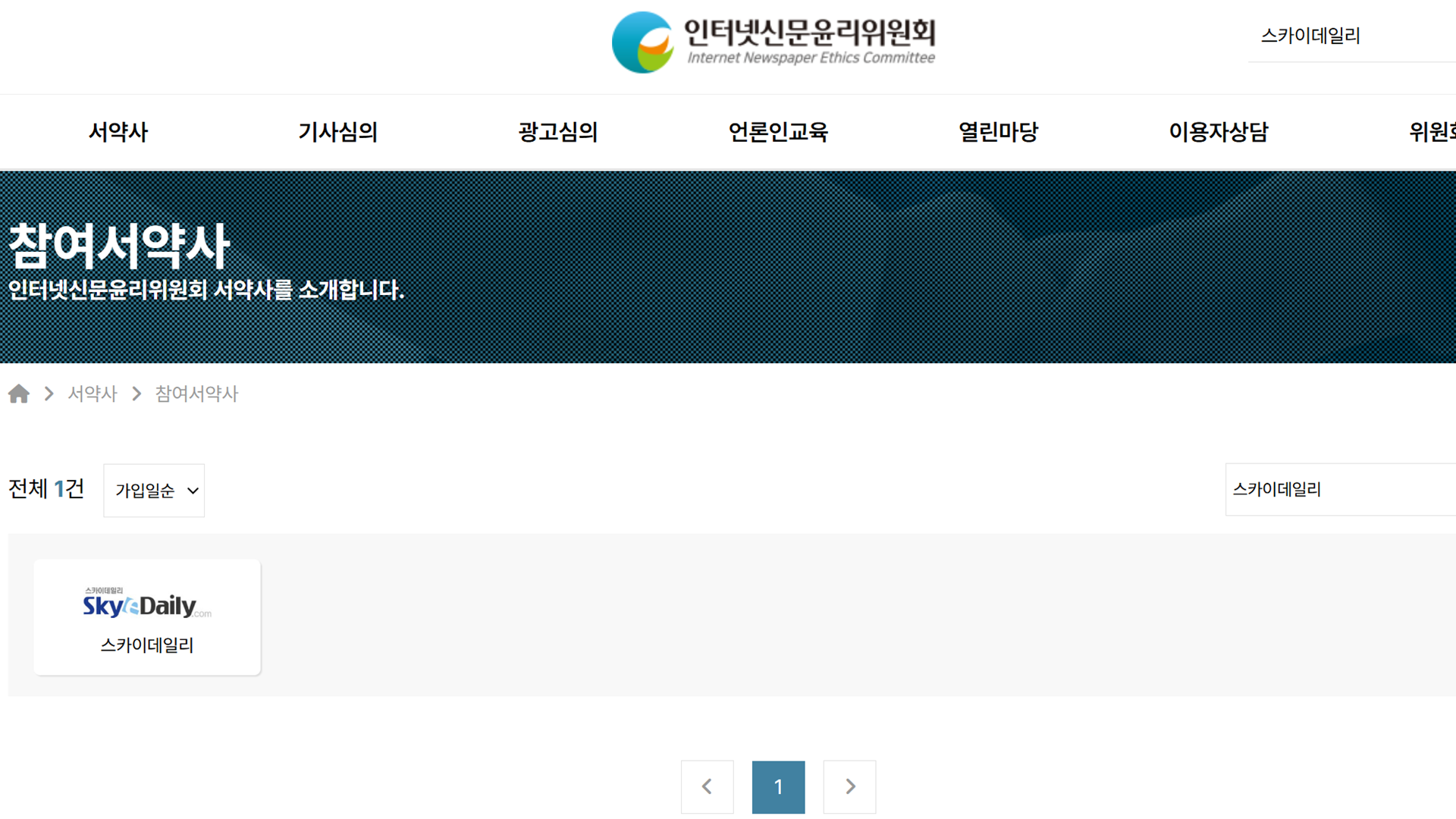 무엇보다도 스카이데일리의 문제점은 인터넷신문위원회에 가입한 언론사라는 점이다.