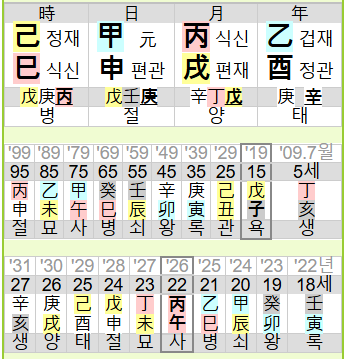 그나마 초년운에서 해수와 자수가 들어있지만 원국에 큰 도움은 되지 못한다. 안그래도 조열한데 을사년과 병오년 뜨거운 기운이 몰려오니 이 사람은 더 제어 안되고, 결국 선 넘는 살인이라는 짓을 저지른다.